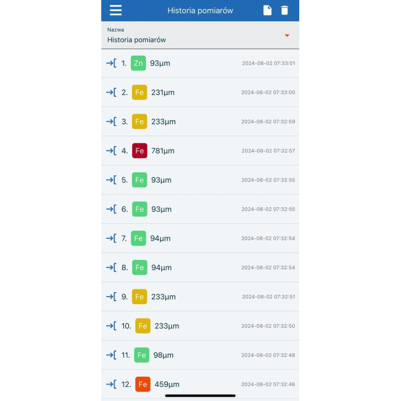 - Pamięć pomiarów: Do 4000 wyników - idealne dla kompleksowych inspekcji i długoterminowego przechowywania danych.